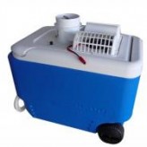 Este refrigerador portátil es una caja de 38 de poliestireno que se alimenta a través del receptáculo del encendedor de cigarrillos de la nave u otro receptáculo de 12 voltios a bordo. Todas las bombas y sopladores en los refrigeradores son dispositivos de hardware probados de grado marino.