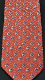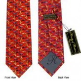 Corbata estampada con helicópteros sobre fondo rojo. Sarga de seda, forrada en tela.