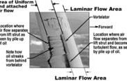 Estos kits de vórtices pueden aumentar las velocidades de hasta 7.5 MPH. Esto se logra mediante la colocación de vortelators en ciertos lugares críticos que hacen que la capa límite para permanecer unido a las superficies de vuelo durante una mayor distancia , y para mantener la más delgada capa límite . El resultado neto de estas dos acciones es que reduce tanto la fricción perfil y fricción de la piel arrastrar componentes de la resistencia parásita . Otra forma de pensar en ello es que la estela de la aeronave será menor por lo que requiere menos potencia para propulsar el avión en el aire. La figura muestra el flujo de aceite de motor negro sobre un tirante paralelo con una tira corta de vortelator adjunto, durante un vuelo de prueba . Observe que detrás de la vortelator se crean vórtices de mini como puede verse por las líneas de aceite que se forman detrás de la vortelator . Estos mini vórtices barren el aceite a un punto entre los mini vórtices , y eso es cómo se forman las líneas de aceite . Cuando uno ve estas líneas de aceite característicos que forman detrás de la vortelator uno conoce la vortelator está trabajando . El vortelator permite el flujo de aire para mantenerse unida al puntal de elevación de aproximadamente el 80 % del ascensor puntales acordes. En el área donde no hay vortelator el flujo de aire se separa del tirante paralelo a aproximadamente 40 % de la elevación de los puntales acorde , como se puede ver a partir de la pila de aceite en la posición acorde de 40 % . Aquí el tirante paralelo es de 2.01 “de espesor, y en la posición del acorde 80 % del puntal de elevación es de 1,18 ” de espesor. Eso significa que la raíz viene de la tirante paralelo es sólo el 59 % del grosor de la vortelator adjunta como sin la vortelator adjunto. Eso significa que también con una estela más estrecho se requiere menos potencia para propulsar el ascensor puntal por el aire. Kit 246-100 es aprobado por la FAA para los siguientes aviones Cessna : 140A , todos los modelos de 150 , todos los modelos de A150 , todos los modelos de 152 , todos los modelos de A152 , 170A y B, todos los modelos de 172 (USAF T -41A ) , P172D , R172E (USAF T -41B ), y ( USAF T -41C & D), R172F (USAF T- 41D ) , R172G ( EE.UU. T -41C & D), R172H (USAF T- 41D ) , R172J , R172K ( conocidos como 172XP , 172RG , todos los modelos de 75, todos los modelos de 180 , todos los modelos de 182 , R182 , T182 , TR182 , todos los modelos de 185 , A185E , A185F , todos los modelos de 205 , todos los modelos de 206 , todos los modelos de P206 , todo modelos de U206 , todos los modelos de TP206 , todos los modelos de TU206 , todos los modelos de 305 conocidas como L -19.