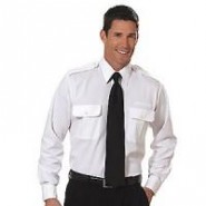 Basado en el uniforme de gala de la fuerza aérea con las características de la clásica camisa de piloto. Bolsillos de fuelle, ranura para el bolígrafo, para la tarjeta de identificación, etc. 65/35 de poliéster y popelín de algodón. Color: BLANCO